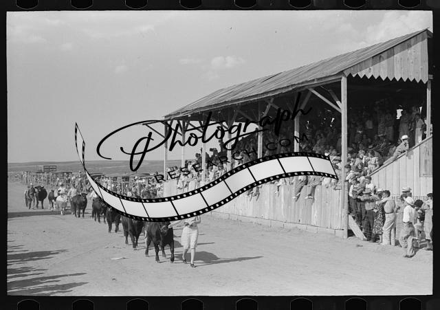 Title: Spectators at 4-H Club fair at Cimarron, Kansas. The 4-H Club fairs have taken the place of the defunct county fairs in Kansas