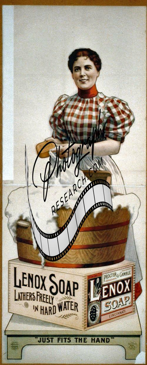 Lenox Soap Lather Freely in Hard Water,1898,woman washing clothes,wash tub