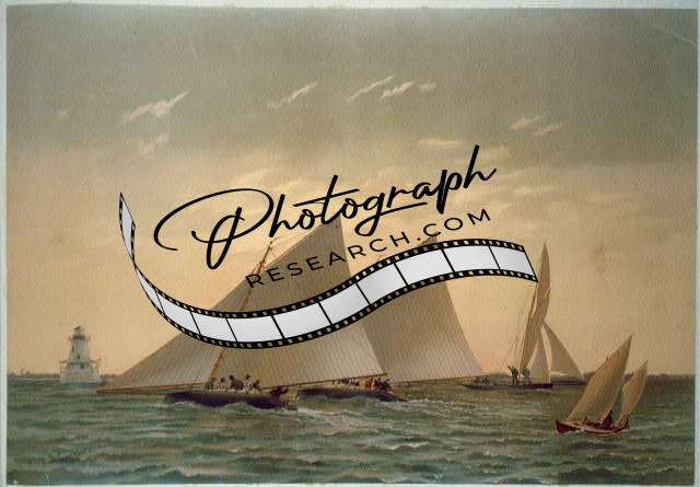 4 racing yachts at sea,LITA,ALBERTINA,LADY EMMA,VALIANT,lighthouse,1884