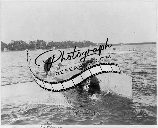 Family group on sailboat,capsize,Long Island,NY,c1898