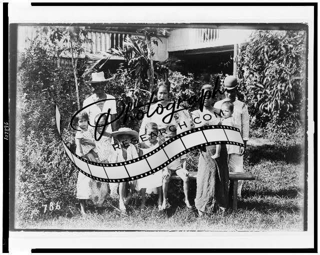 Filipino family,lawn,buildings,structures,homes,children,infant,Philippines,1899