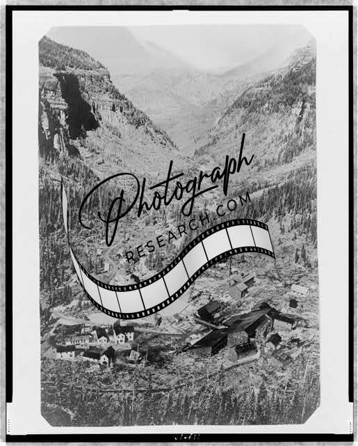 Aerial View,Ouray,Colorado,CO,1896-1910,Mountains,Town,Train,Railroad