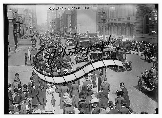 5th Avenue,Easter 1911,automobiles,pedestrians,buildings,streetlamps 1