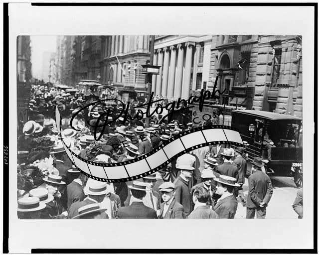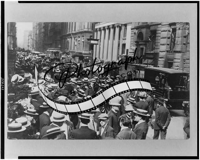 Crowd on Wall Street before Trinity Church,New York City,NYC,1911,New York,NY