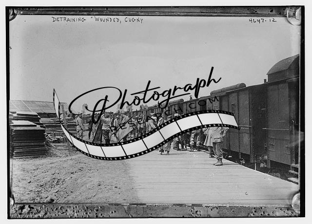 Detraining wounded,soldiers,troops,transportation,trains,Cugny,Bain News Service