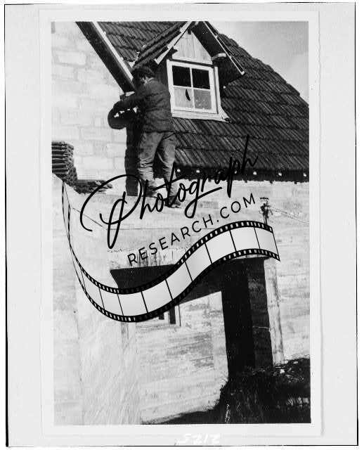 sMG-Stand,als Wohnhaus getarnt,Workman constructing bunker,La Breche,France,1944