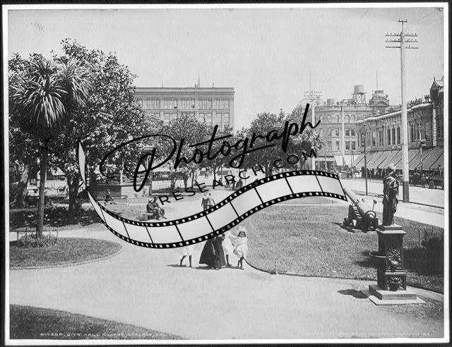 City Hall Square,Oakland,CA,Cannon,Statue,Pedestrians