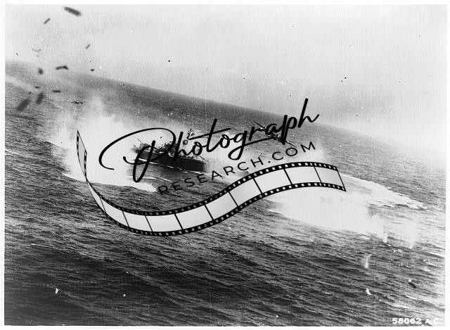 North American B-25's churn water,Japanese frigate,March 1945,South China Sea