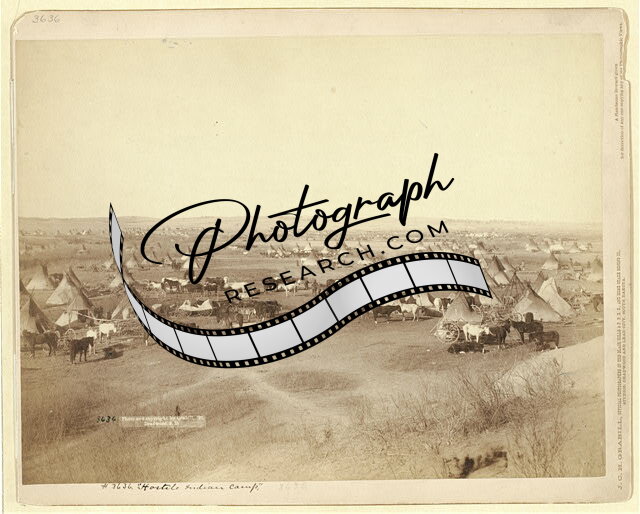 Summary: Group portrait of Big Foot's (Miniconjou) band and federal military men, in an open field, at a Grass Dance on the Cheyenne River, S.D.--on or near Cheyenne River Indian Reservation.