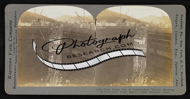 View from top of construction trestle, showing 58-foot gate; Pedro Miguel Locks,