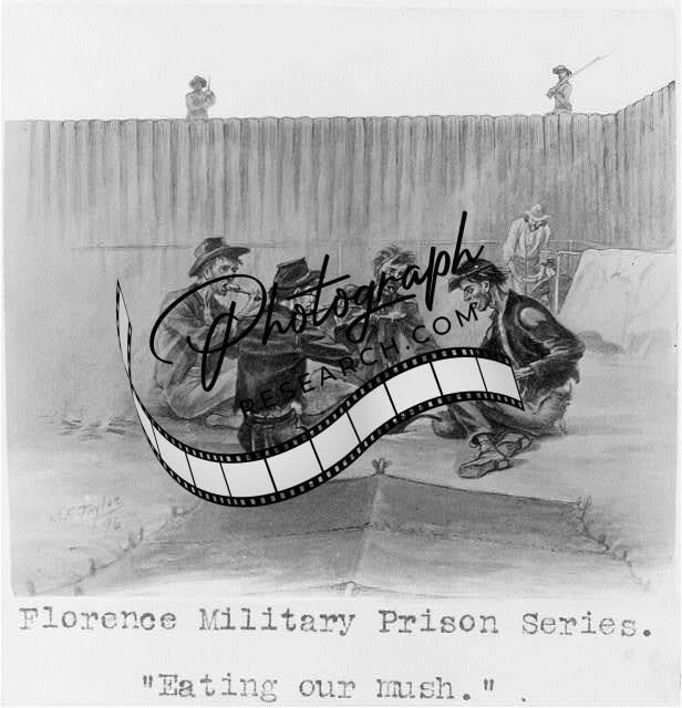 Military Prison Series,Florence,South Carolina,SC,Eating our Mush,c1898