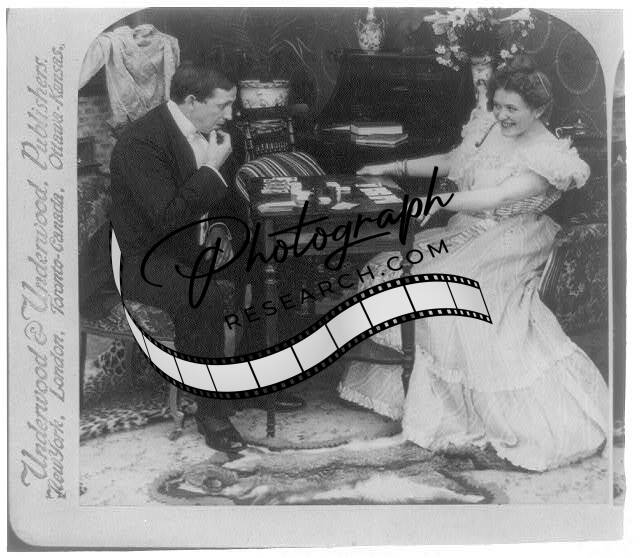 Business should not interfere with pleasure,c1907,man and woman flirting,desks
