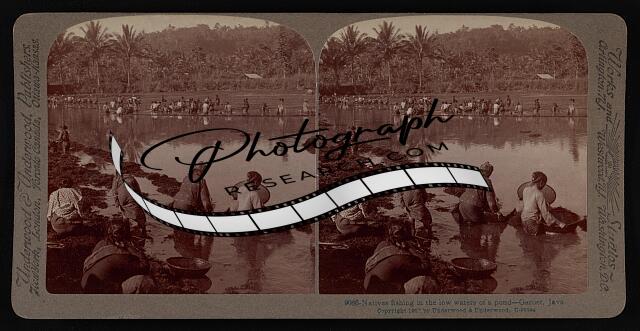 Natives fishing in the low waters of a pond--Garoet, Java