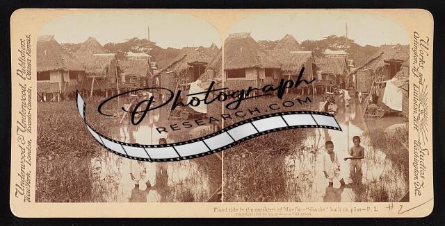 Flood tide in the outskirts of Manila - "shacks" built on piles - P. I.
