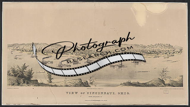 View of Cincinnati,Ohio from Covington,Kentucky,c1848,Boats,Harbor