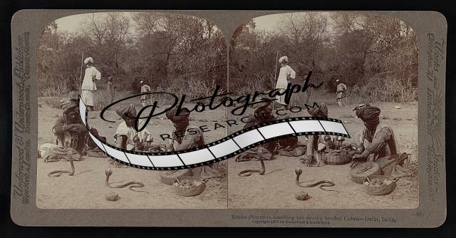Snake-charmers handling the deadly hooded Cobra-Delhi,India