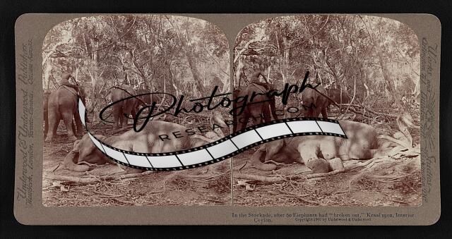 In the Stockade, after 60 elephants had "broken out," Kraal 1902, interior Ceylo