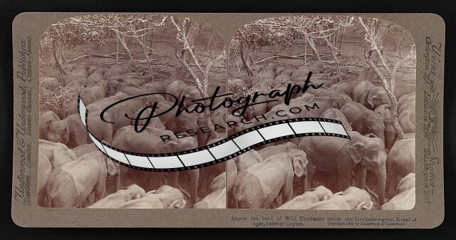 Wild elephants (104) inside the Stockade--great Kraal of 1902--interior Ceylon