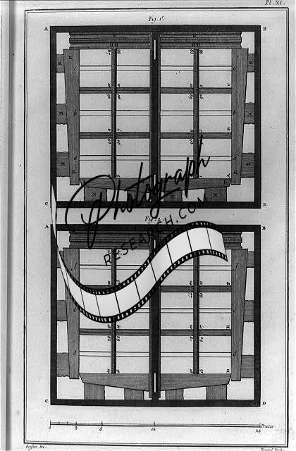 Imprimerie,Press vue par le cote du dehors,upright screw hand press,photo