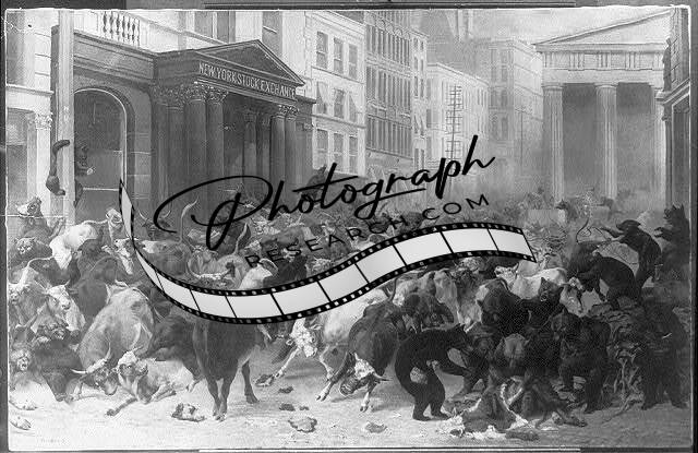 Bulls & Bears fighting on Wall Street, New York Stock Exchange