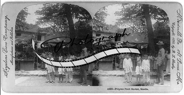 Manila,Philippine Islands: Filipino fruit market,c1899,man,children,photograph