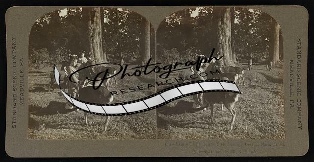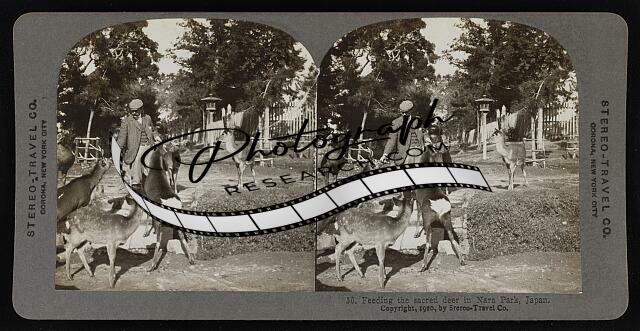 Title: Charming youth and hoary age--a fair devotee counting the stone lanterns, Kasuga, Nara, Japan