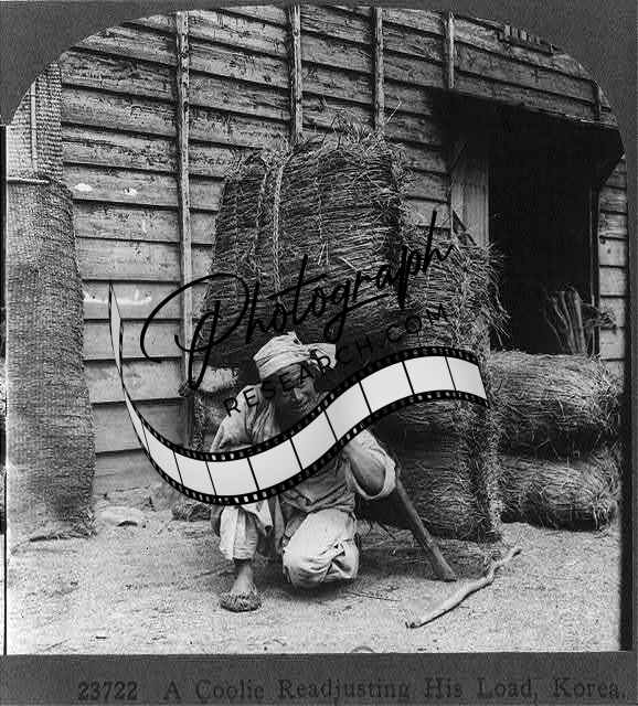 A coolie readjusting his load,Korea,December 16,c1926,man,hay