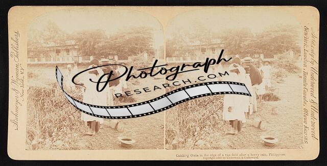 Catching crabs in the edge of a rice field after a heavy rain, Philippines