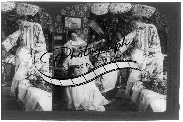 'And don't be so glum - aren't you enjoying it?',c1907,women,guitars,umbrellas
