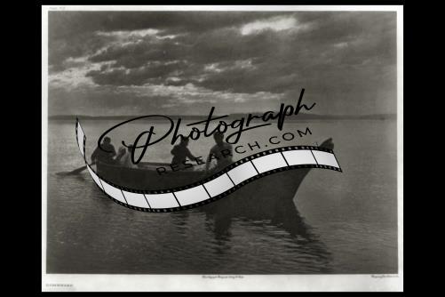 Homeward,5 Indians in boat in water,c1898,Edward S Curtis photo,clouds