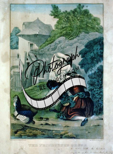 Frightened brood,1856-1907,Currier & Ives,Photograph,children,chicken,girl,boy
