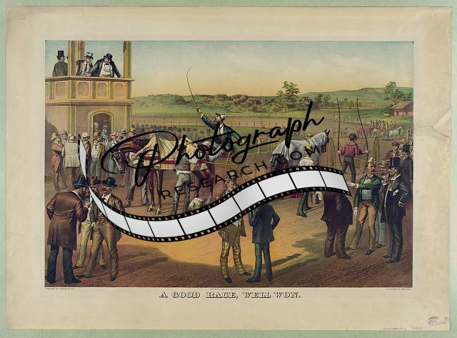 A good race,well won,c1887,Currier & Ives,Photo,Harness racing,men,horses