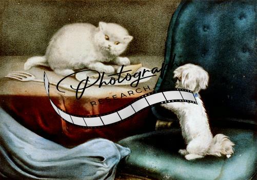Good little Fido,naughty Kittie,Currier & Ives,Photograph,1852-1907,dog,cat