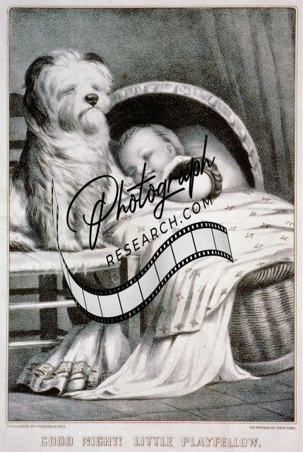 Good night! little playfellow,1856-1907,Currier & Ives,Photograph,infant,dog