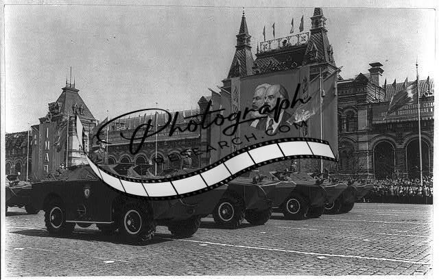 Motorized infantry passing portraits,Marx,Lenin,Parade