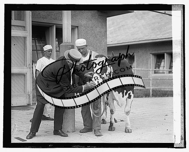 Sandberg taking nose prints,7/7/22,Cow,July 1922