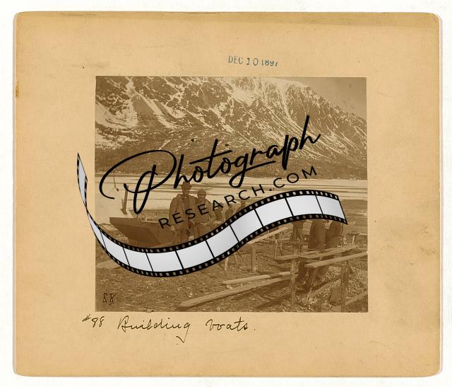 Building boats,scows,lake,mountain,c1897