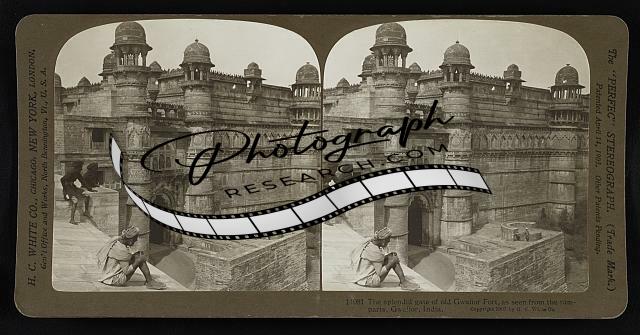 The splendid gate of old Gwallor fort,as seen from the ramparts,Gwalior,India