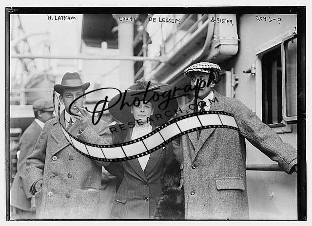 Hubert Latham,1883-1912,French Air Pilot,Count DeLesseps & sister,smoking