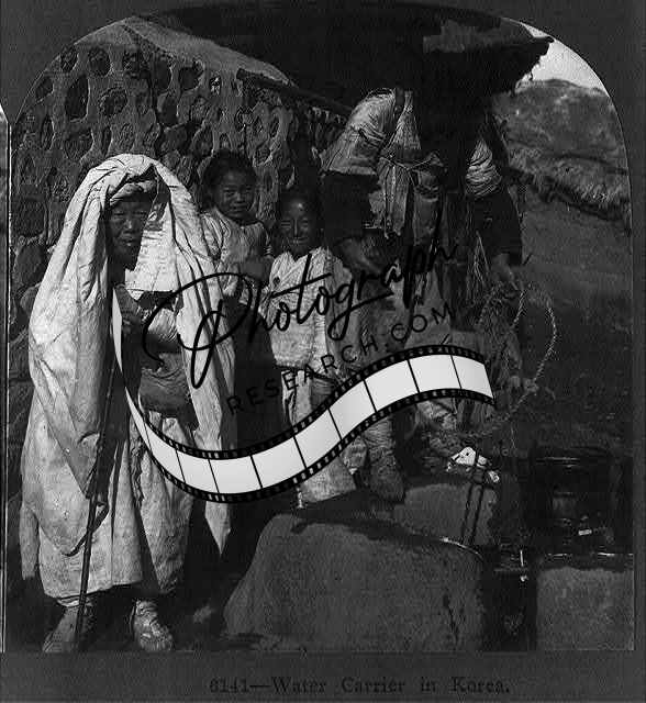 Water carrier in Korea,elderly women and children,under pass,c 1905