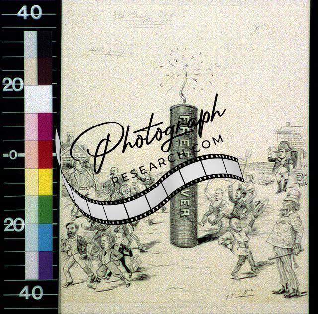 It's Going Off,July 4,1896,George Yost Coffin,Free Silver,Fourth of July,Cartoon