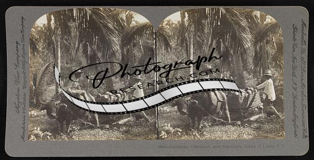 Gathering cocoanuts near Pagsanjan, Island of Luzon, P. I.