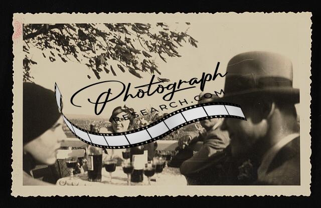 [[Martha Dodd and Gestapo chief Rudolf Diels drinking wine at outdoor cafe]]