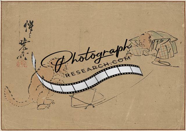 Man or Monk at Table,Possibly Asleep or Meditating,Photo of Ukiyo-e,Japan,c1825