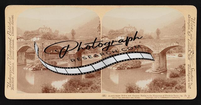 A picturesque bridge and country homes in the mountains of northern Spain--betwe
