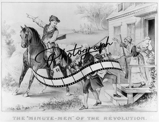 The 'minute-men' of the revolution,c1876,rifles,men,horse,woman on porch