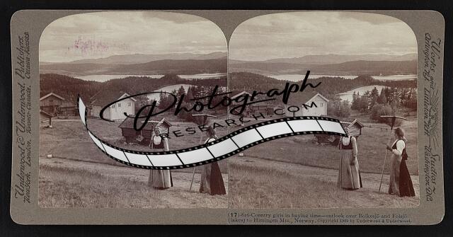 Country girls in haying time--outlook over Bolkesjö and Folsjö (lakes) to Himing