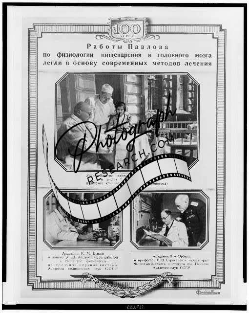 3 images of Russian Scientists in laboratories,quotation from Ivan P Pavlov,1947