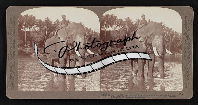Giant of the tropical jungles--riding a huge elephant, interior Ceylon