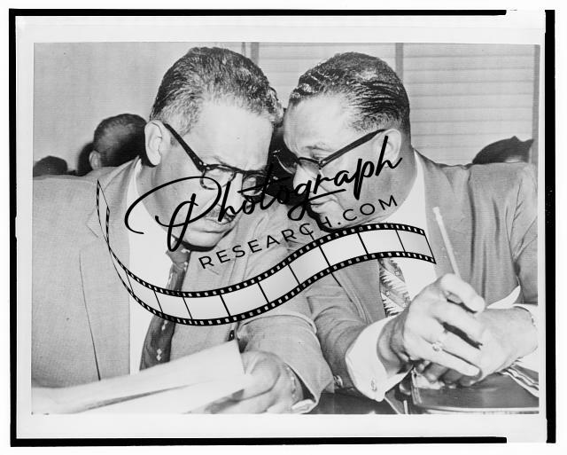 W.J. Durham (right), attorney for the NAACP, talks with Thurgood Marshall, the organization's chief counsel, in federal court here, July 30th